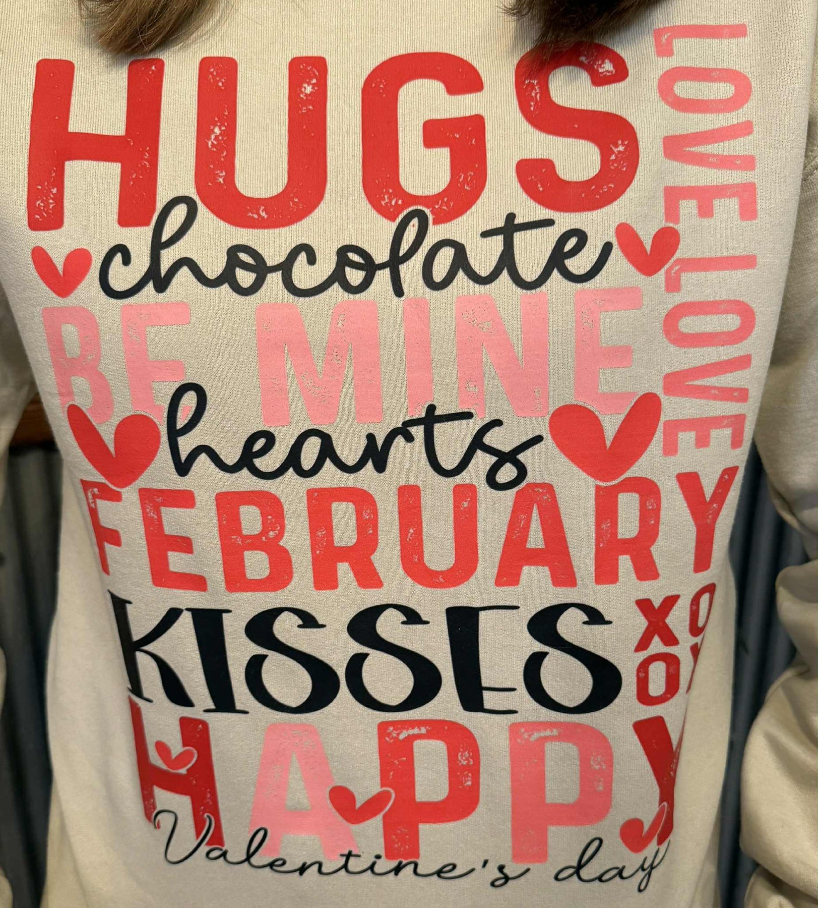 Get ready to spread the love in this sand-colored crewneck featuring vibrant pink, red, and black Valentine's Day graphics. With its charming "hugs & kisses" messaging, this cozy pullover is your go-to for expressing affection with a wink and a smile. Perfect for date night, galentine's celebrations, or just reminding someone special how much they mean to you. Soft, stylish, and bursting with romantic charm—because love looks good on you.