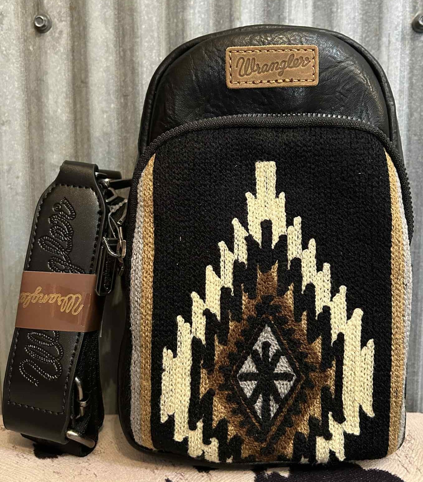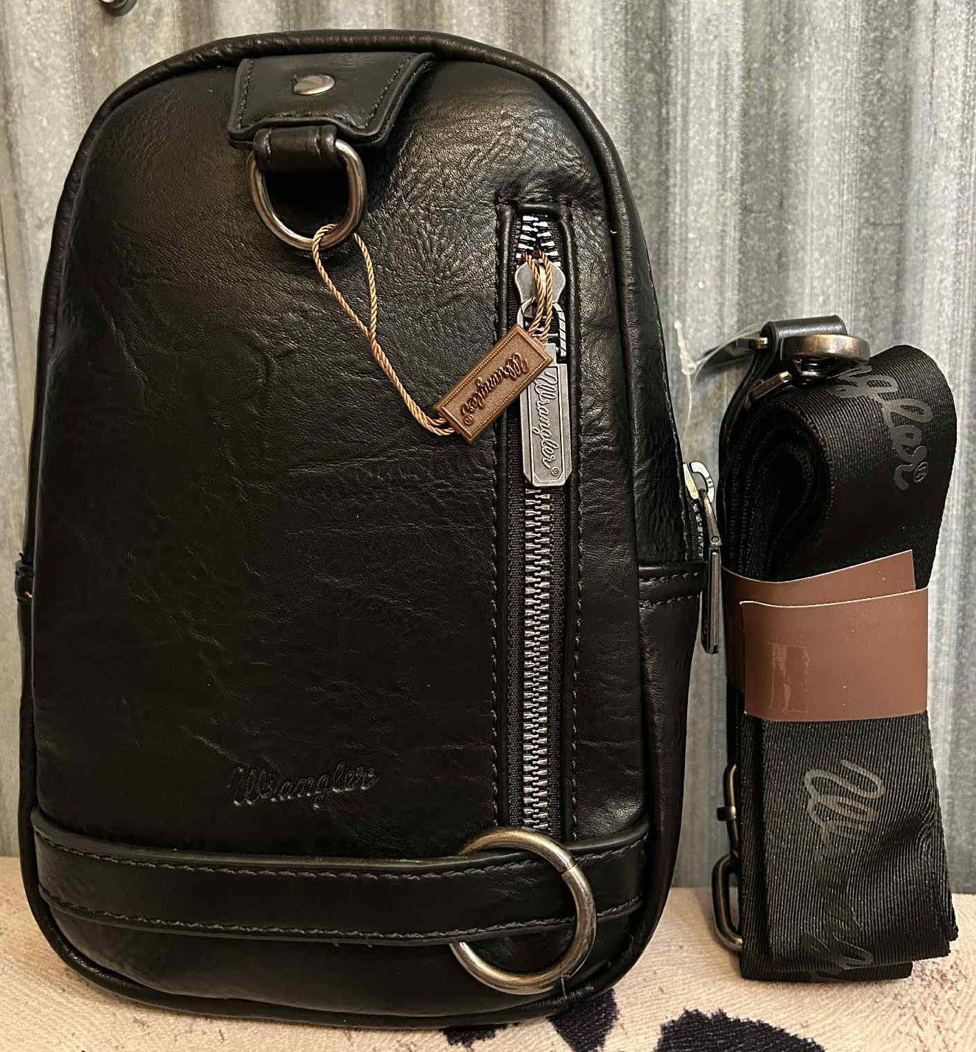 BLACK CANVAS EMBROIDERED WRANGLER CROSSBODY CHEST BAG