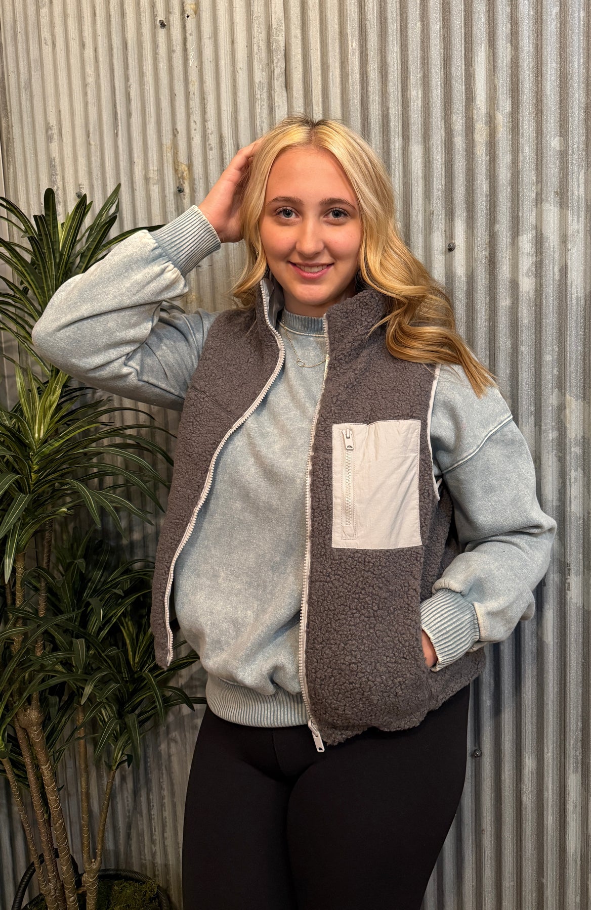 Introducing the Say No More Vest, the versatile addition to your wardrobe! This charcoal vest is not just reversable, but also features warm and cozy sherpa lining. Say no more to boring outfits with this playful and practical vest.