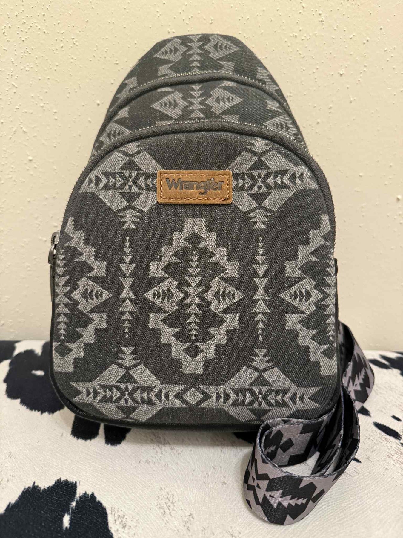 BLACK AZTEC PATTERN WRANGLER CROSSBODY CHEST BAG